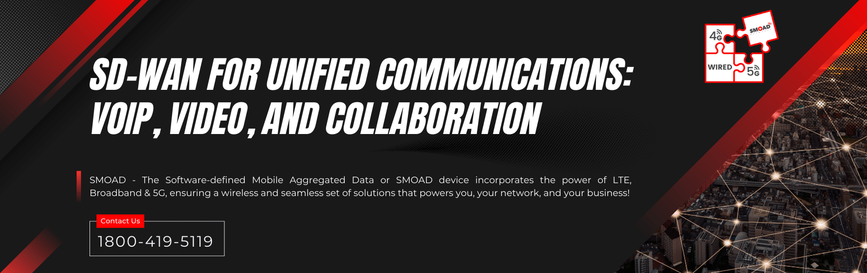 SMOAD SD-WAN allows enterprises to capture control of IT activities by enhancing the user experience of UC infrastructure. With SMOAD, you have the key to multiple public and private links at affordable cost. Moreover, SMOAD offers mobile aggregated redundancy to keep UC up and running at all times.